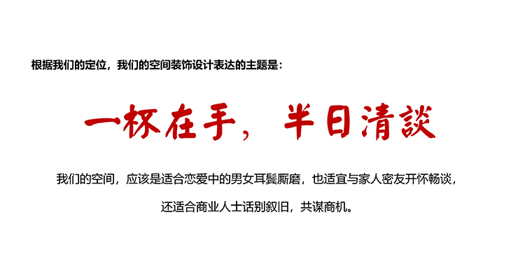 1、空間是悅得閑品牌內涵的直觀化、立體化表達。悅得閑的空間裝飾應該呈現鮮明的品牌特征,符合廣式點心茶樓的品類特性;