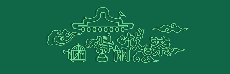 因此,悅得閑的logo我們使用圖形加文字的形式。大紅色的底色上用金色的品牌字,傳遞一種茶樓出品的品質感,表示金字招牌之意。左側綠色色塊上一個原創圖形,取自于得閑飲茶的閑字,將閑字變形,用點心蒸籠的圖形填充,表明了品類屬性也傳達了得閑飲茶的文化IP。