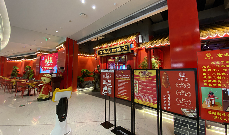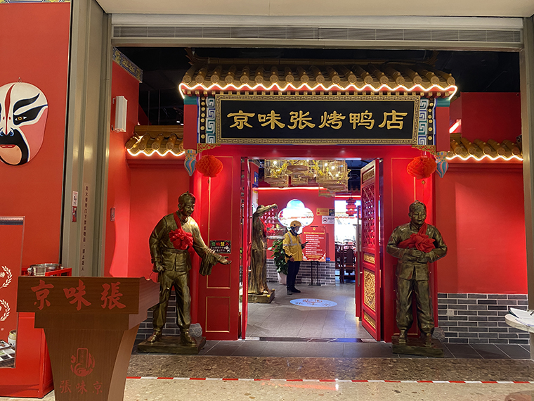 品深設(shè)計全案升級的京味張烤鴨店,是北京菜的代表品牌,整個門面采用大面積中國紅,非常鮮明,醒目。消費(fèi)者可以用一句話就表達(dá)出來:整個門面全部是紅色那個餐廳。這就很好被消費(fèi)者傳播了。色彩色調(diào)搭配在門面設(shè)計、門頭設(shè)計中需要重點(diǎn)考慮,合理搭配。
