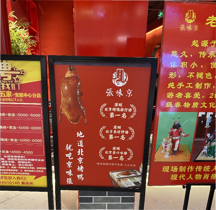 第四要素:門面中應(yīng)該有發(fā)光燈箱廣告,以精致圖文并茂的形式呈現(xiàn)食物高精度畫面,讓顧客產(chǎn)生強(qiáng)烈的食欲或海報展現(xiàn)食物的制作技法,體現(xiàn)食物背后的匠心,讓顧客震撼、感動。主推產(chǎn)品讓客人看到就想買。這個就好吃,買這個沒有錯。悅得閑廣式點(diǎn)心茶樓每一個店門口推的點(diǎn)心紅米腸就是這一做法的體現(xiàn)。