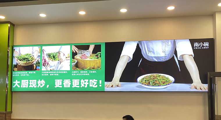我們通過前期周密的市場(chǎng)考察和詳細(xì)的內(nèi)部調(diào)研,品深餐飲全案設(shè)計(jì)團(tuán)隊(duì)為南小碗提取了“小鍋小灶,大廚現(xiàn)炒”的核心訴求,并在門頭和店內(nèi)廣告畫面不斷重復(fù)強(qiáng)化“小鍋小灶,大廚現(xiàn)炒”小鍋小灶更有鍋氣,大廚現(xiàn)炒更好吃。并把食材原產(chǎn)地,和菜品制作過程在門店形象中不斷放大,重復(fù),讓消費(fèi)者記憶深刻。