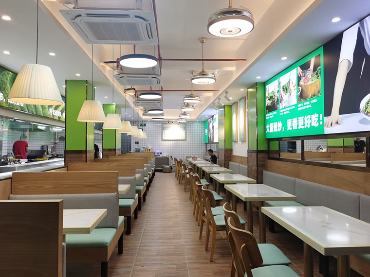 現(xiàn)炒快餐因?yàn)轭櫩妥灾鬟x擇菜肴、稱重,菜品,新鮮現(xiàn)炒;廚房是全開放設(shè)計(jì),現(xiàn)炒過程一覽無余,新鮮現(xiàn)炒一覽無遺;門店環(huán)境也比傳統(tǒng)快餐更加舒適精致。