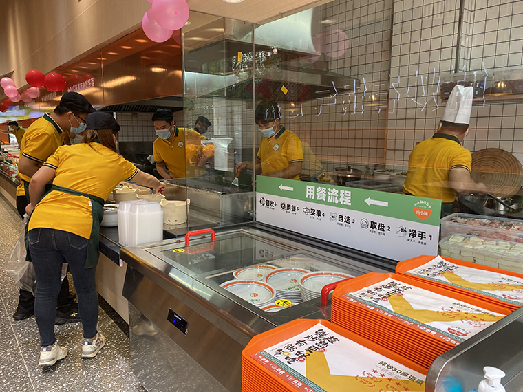 1、餐廳功能設(shè)計(jì),不追求座位數(shù),而是充分滿足后廚運(yùn)轉(zhuǎn)效率。整個(gè)餐廳遵循前廳與后廚6:4的面積配比,后廚運(yùn)轉(zhuǎn)的空間夠大,空間收納整齊,廚師工作效率更高。廚房設(shè)置在入門口,全透明廚房,顧客遠(yuǎn)遠(yuǎn)就看得見廚師在炒菜,現(xiàn)炒新鮮看得見。顧客進(jìn)門洗手,取餐盤自助選菜,找位置就餐,餐具回收,整個(gè)動(dòng)線非常流暢。動(dòng)線設(shè)計(jì)非常驚艷,30多到菜品讓消費(fèi)者產(chǎn)生一種想全部吃一遍的沖動(dòng),進(jìn)而胃口大開,長期光顧我們。